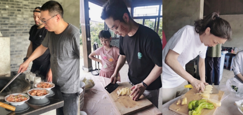 在樂舞老師的指導下,大家學習了非洲鼓的拍打技巧,并“戴頭飾,畫面妝,穿草裙”,設計舞蹈動作,分組進行鼓藝舞藝比拼。在隨后的農家灶廚藝展示環節,大家分工協作,密切配合,制作出豐盛的農家大餐。此外,大家還一起踏青欣賞周邊美景,擁抱大自然,緩解工作的壓力,放松身心。